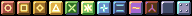 #pixelart (#simplejpc16 palette): a series of puzzle-game-style blocks with different geometric symbols on them, in an experiment on how different color hues can be approximated.