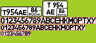 This is a picture of two example numberplates, as well as a complete font, for both the wide (“European”) and narrow (“American”) style of numberplates issued by Russia since 2018.
